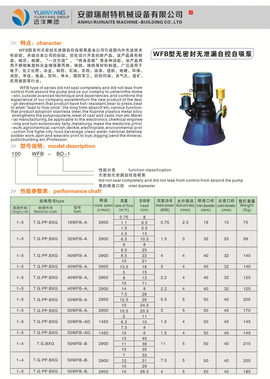 WFB型无密封无泄漏自控自吸泵