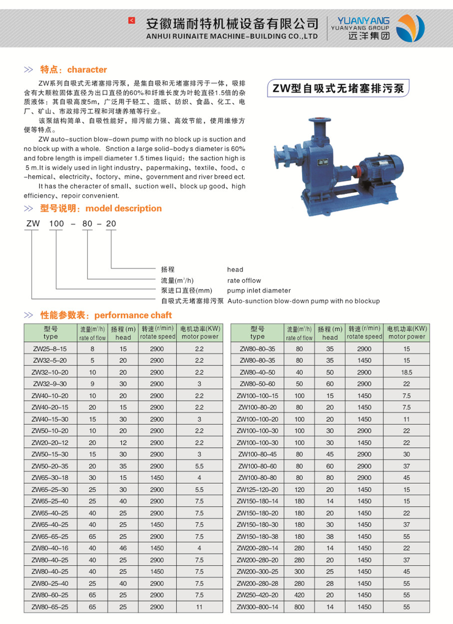 ZW型自吸式无堵塞排污泵